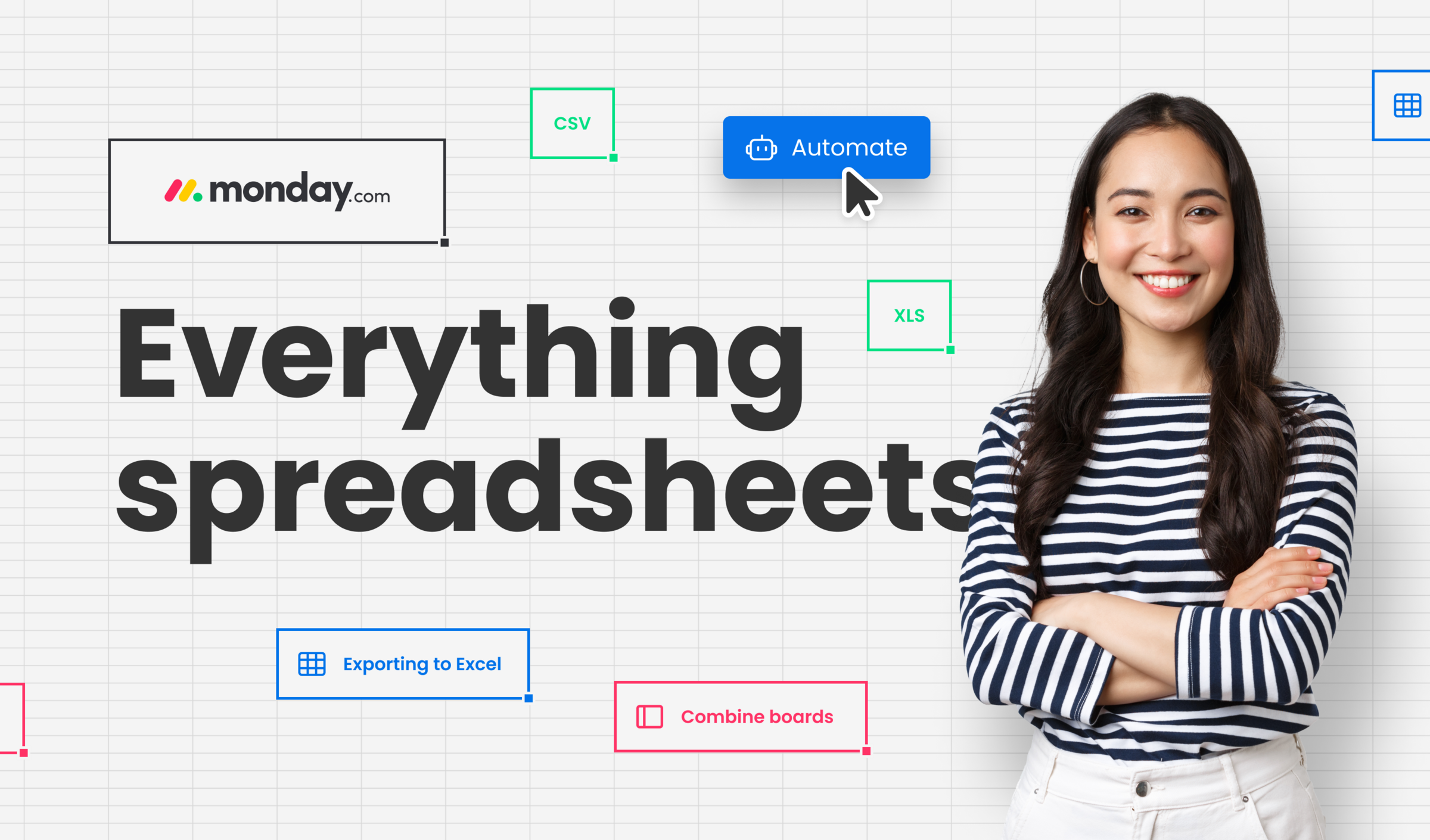 Spreadsheet templates let you easily export one or more monday.com boards as Excel spreadsheet. You can either export Excel spreadsheets manually and on demand, or periodically with automations.