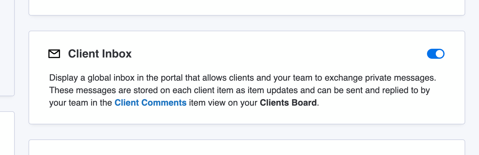 Both, the Item comments and the Client Inbox feature share the same underlaying Clients Comments item view. But in context of the Client Inbox, the item view needs only to be added once to your Clients Board items.