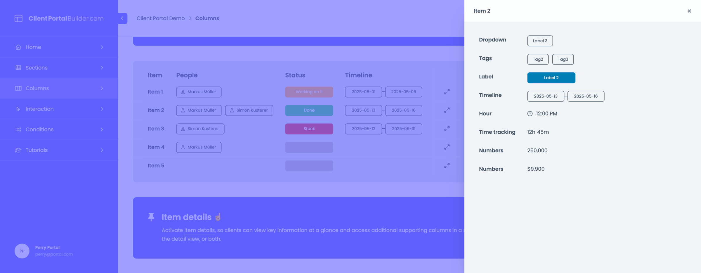 This guide explains how to enable item details in your monday.com client portal, so clients can view key information at a glance and access additional details in read-only mode on demand.