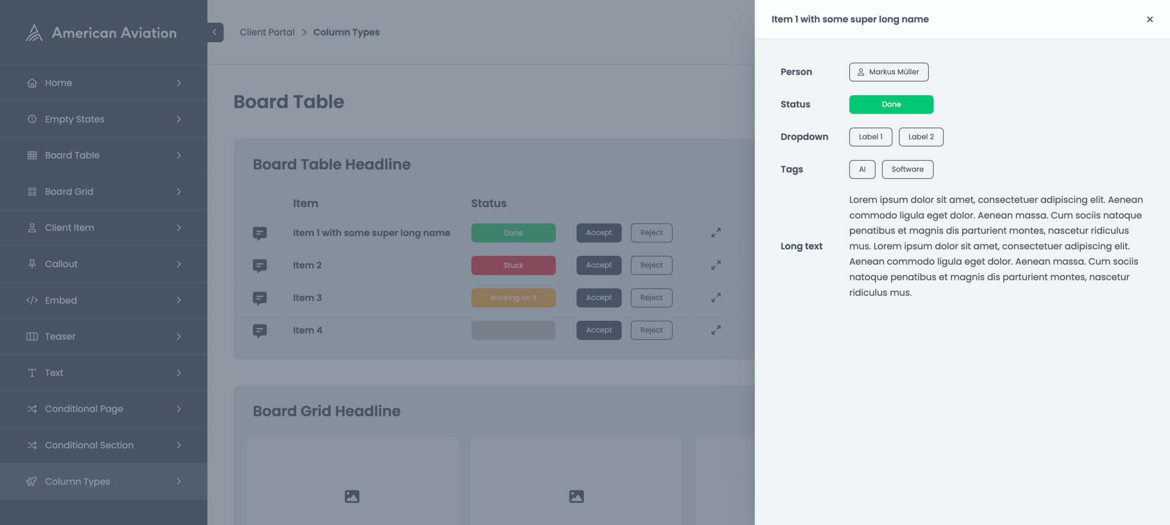 Item details allow you to keep your board table and grid sections clean without exposing all columns at once. Clients can quickly scan key information and open item details to view additional columns when needed. This makes item details especially useful for: