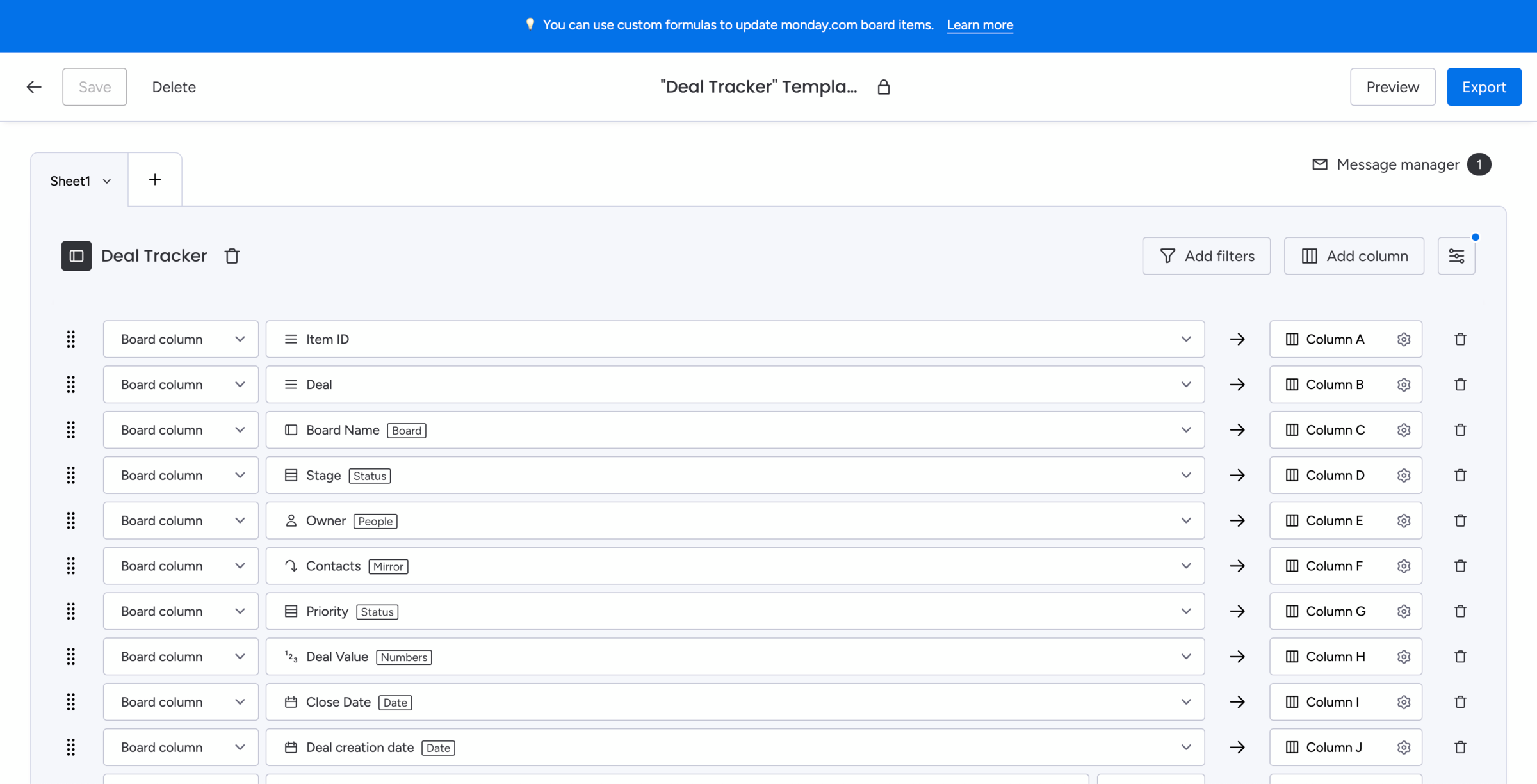 Create your first spreadsheet template and get started with exporting from monday.com to Excel